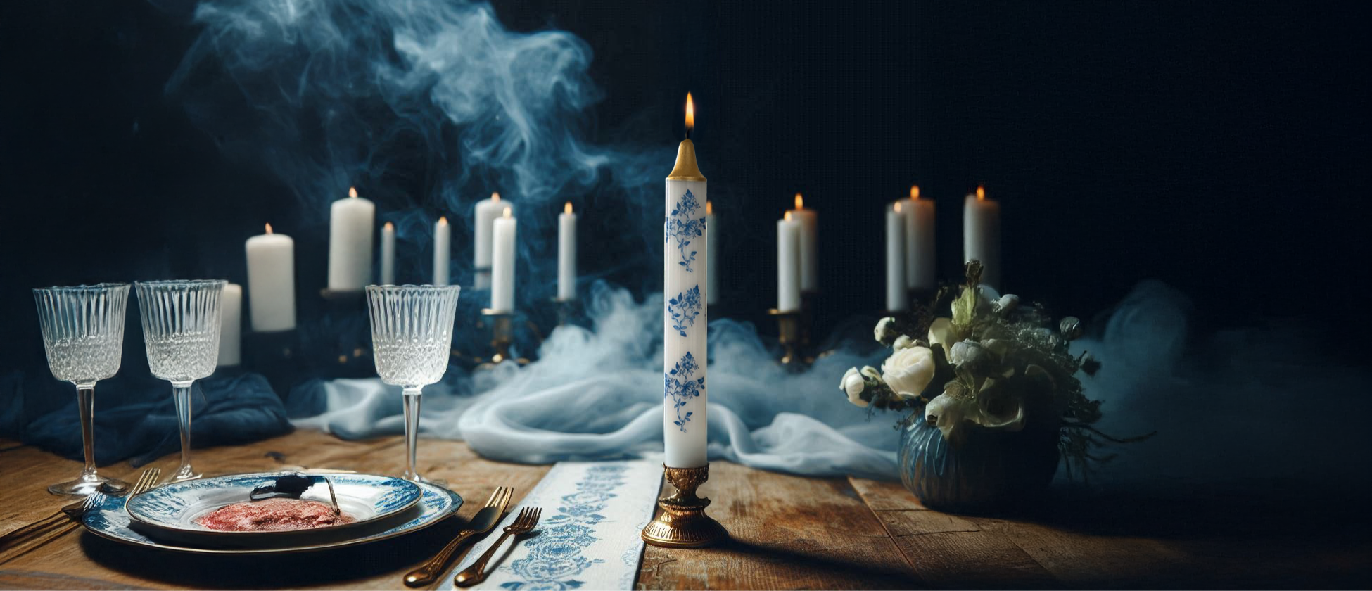 3-Pack Blue Floral Candles